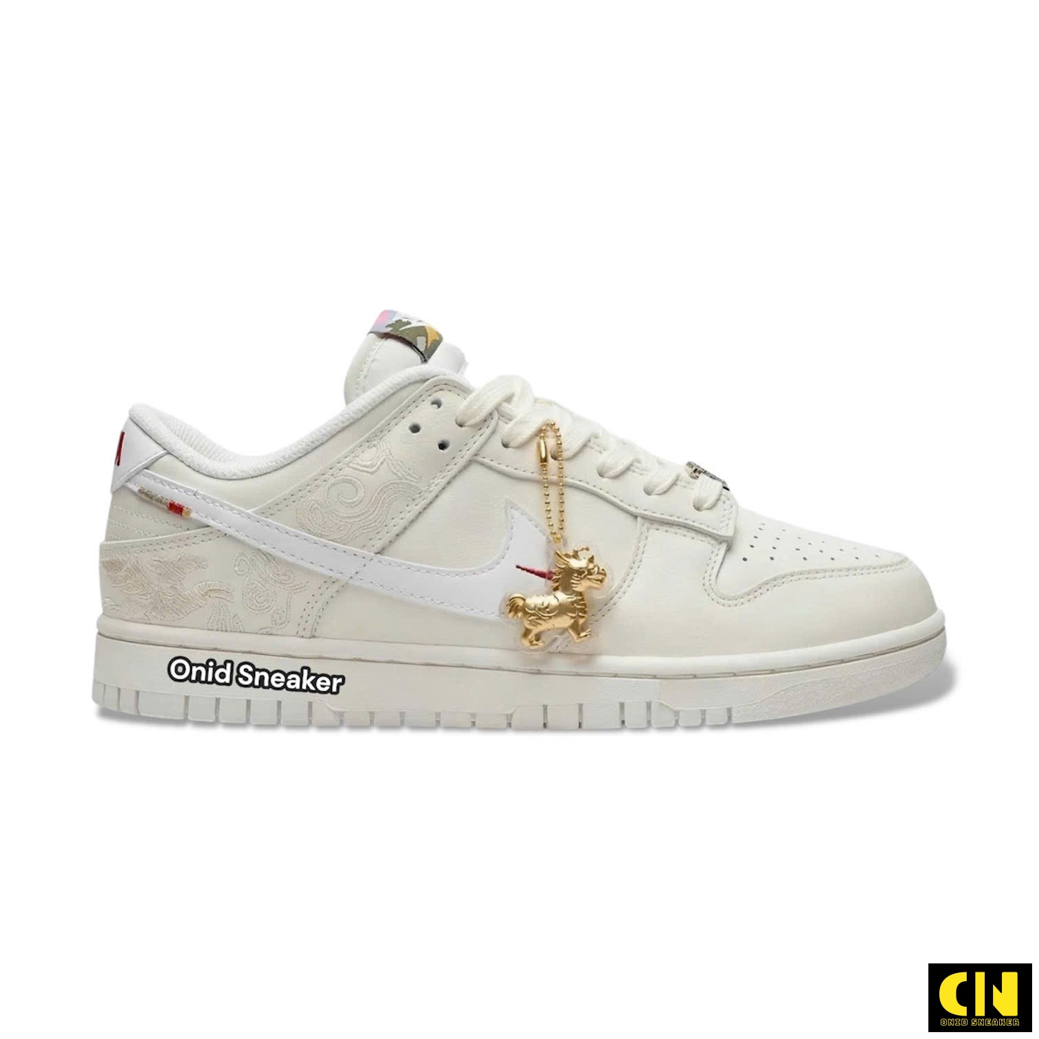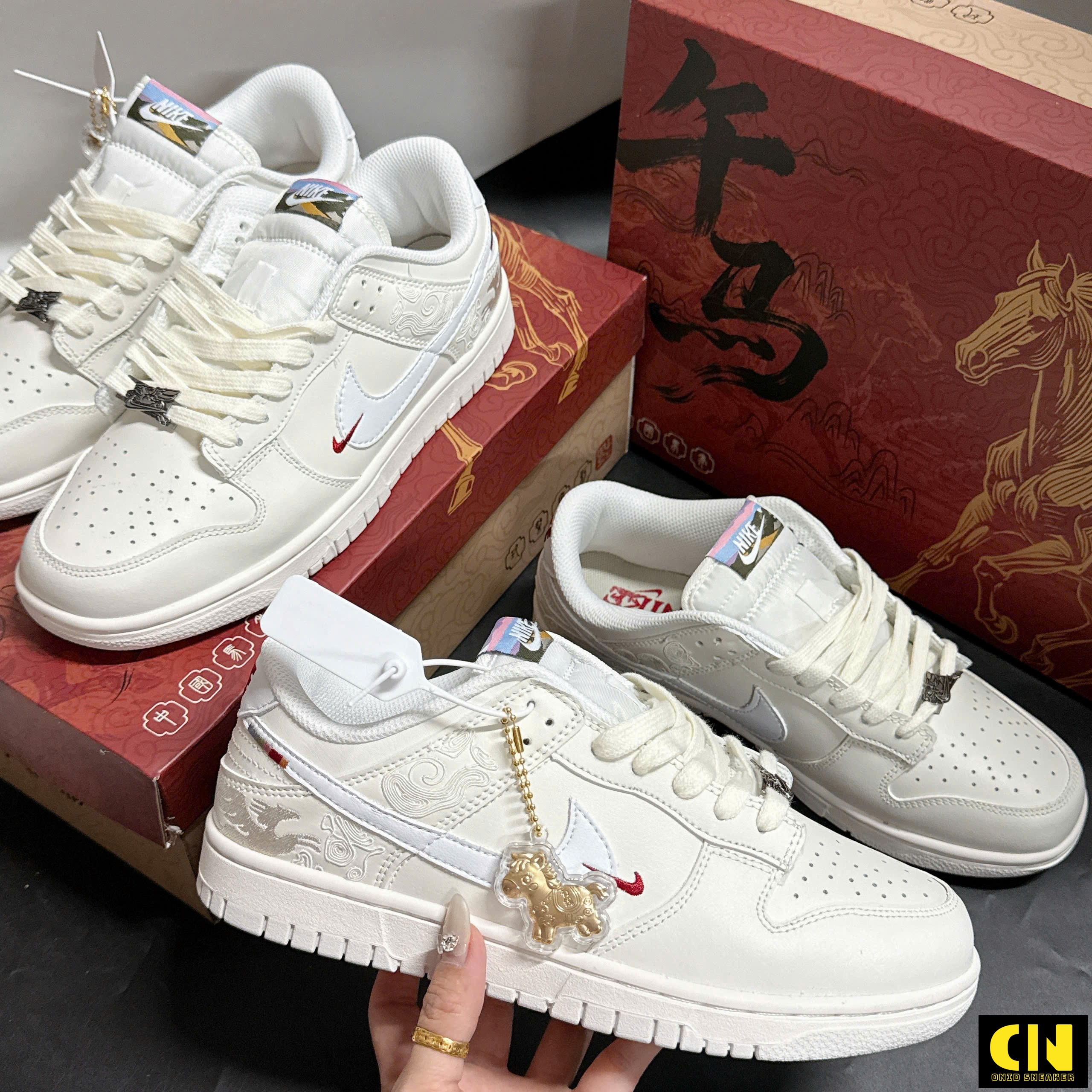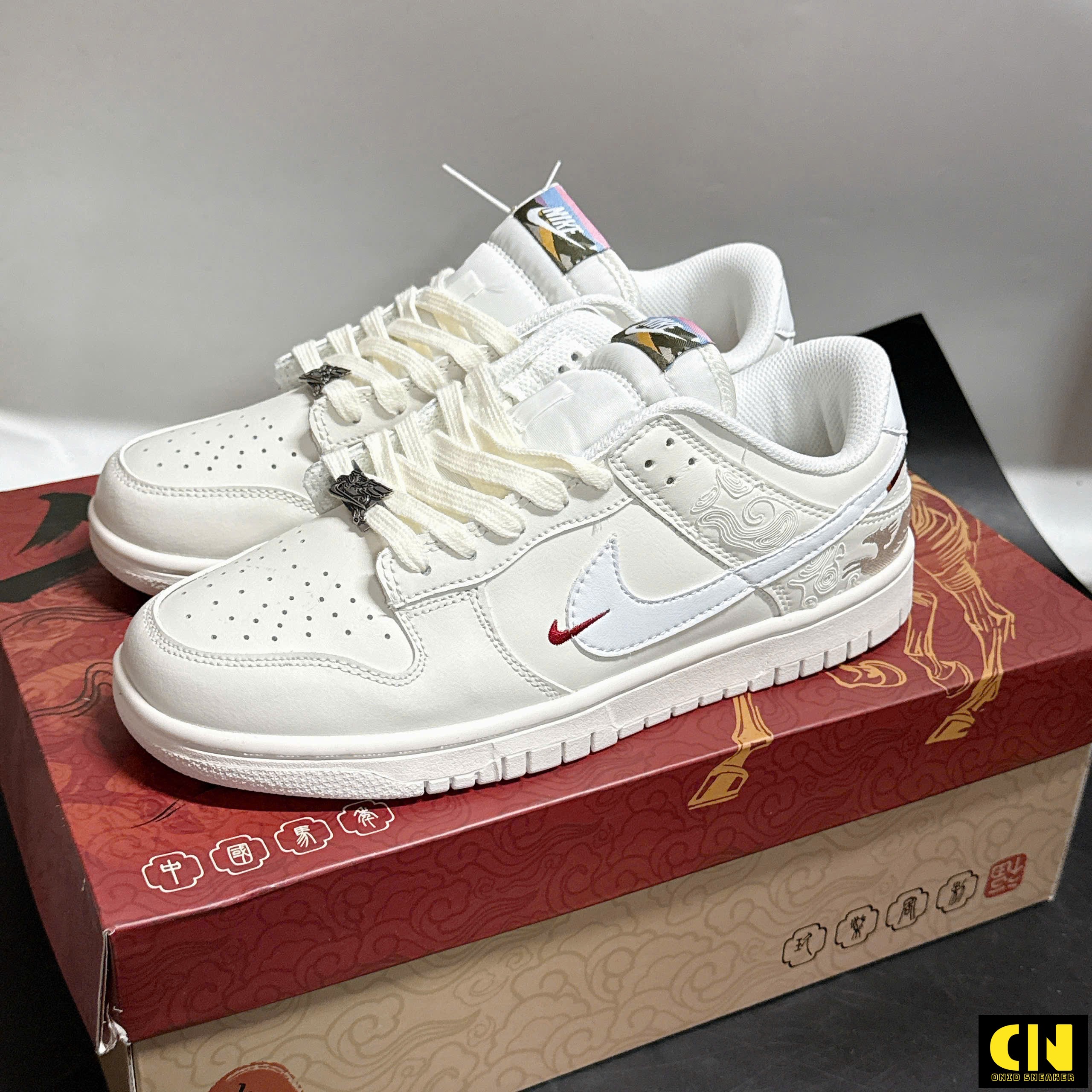 Giày Nike Dunk Low Pegasus Pack White Crimson Detail kèm Charm Ngựa