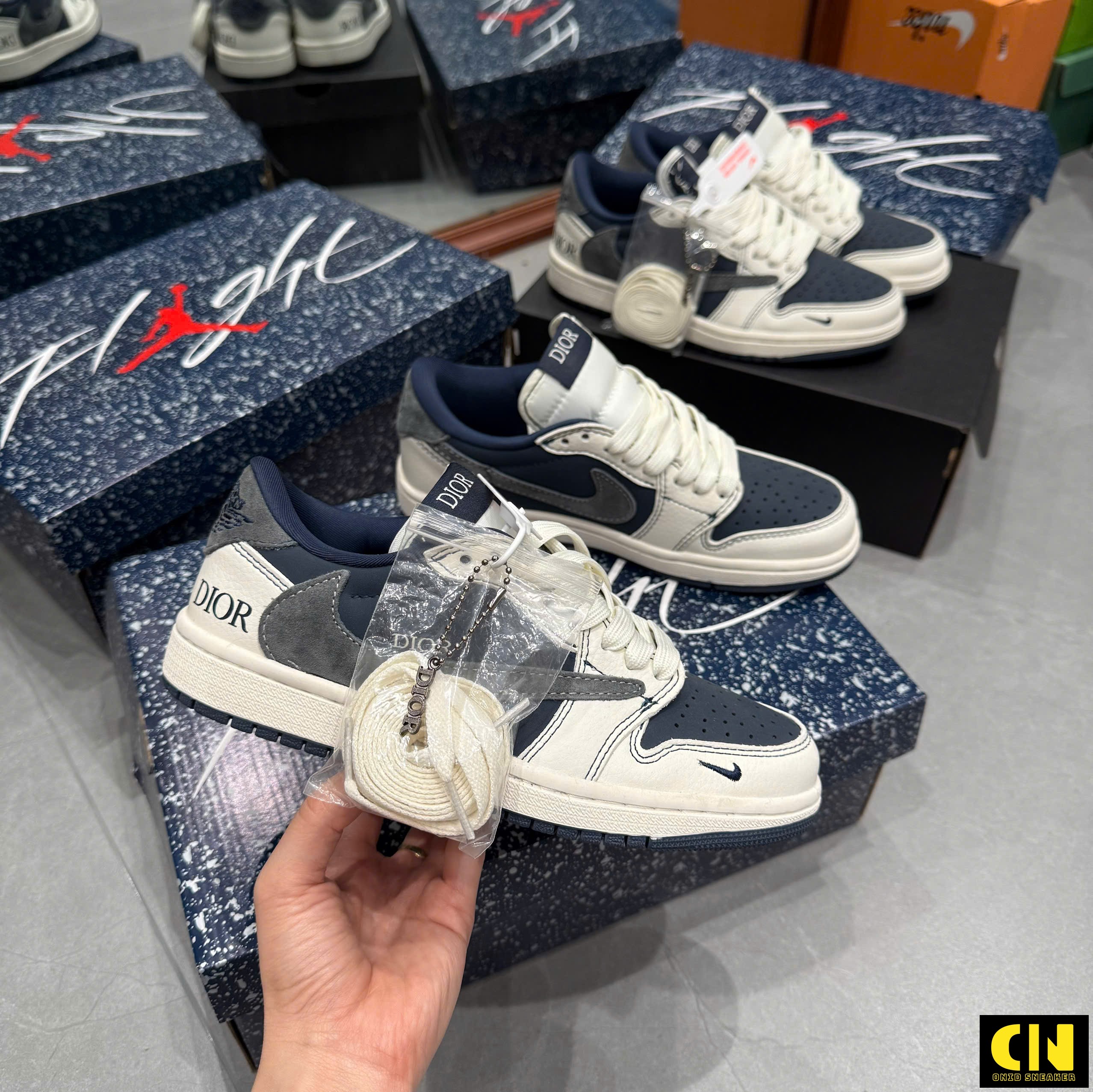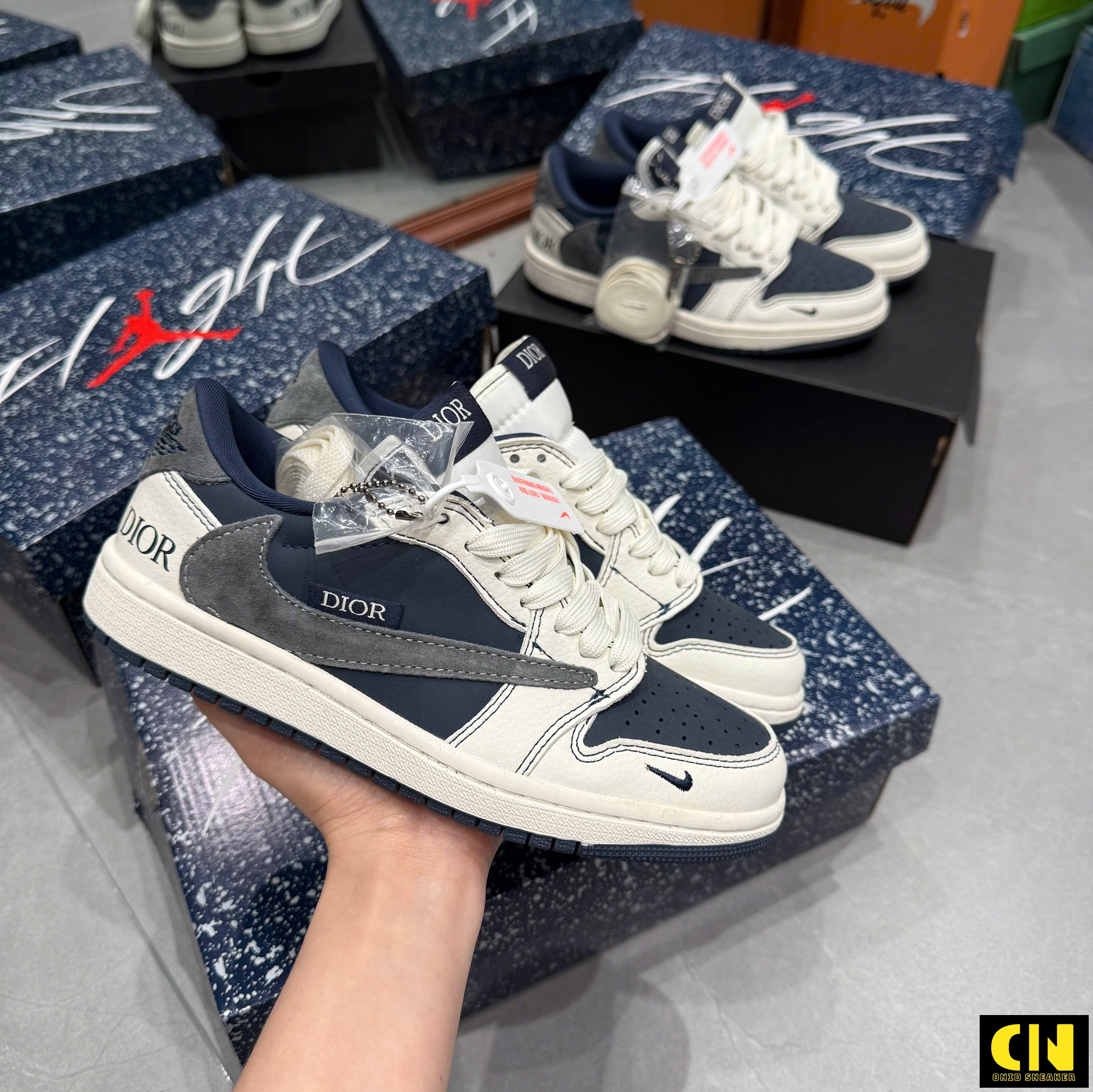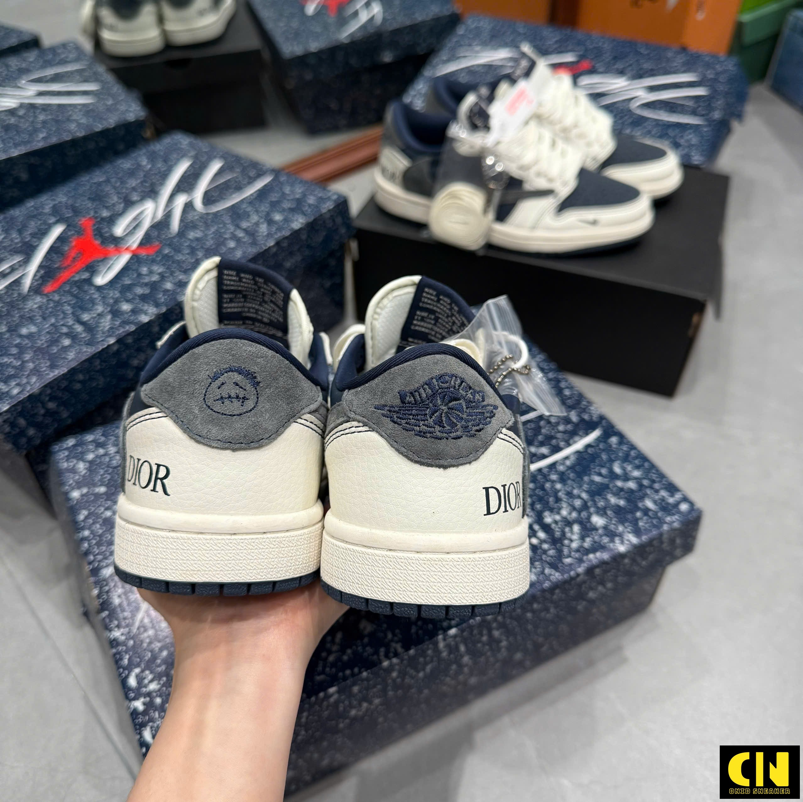 Một số hình ảnh Giày Nike Jordan 1 Low Travis Scott Dior Grey Navy Blue Fullbox