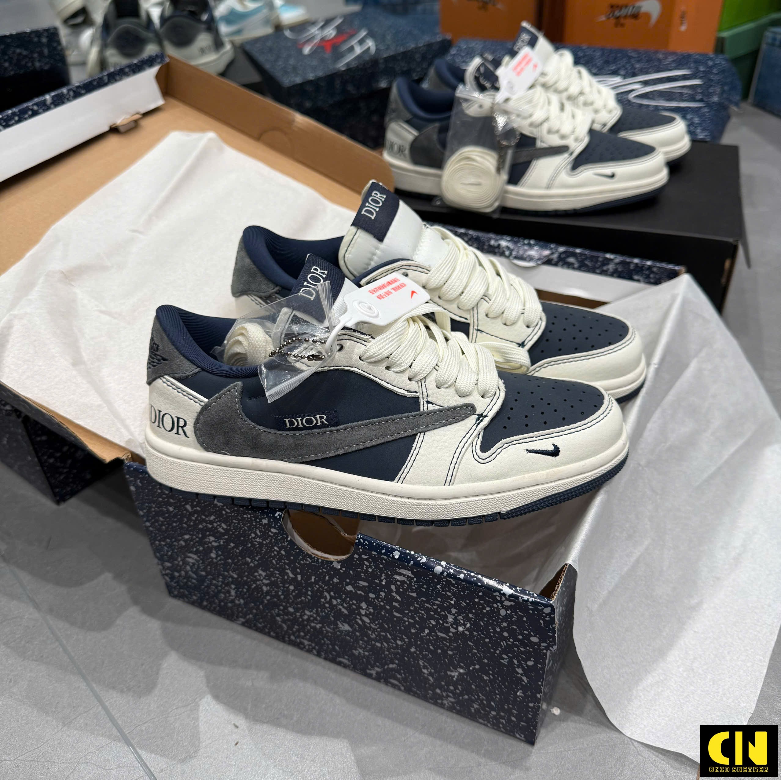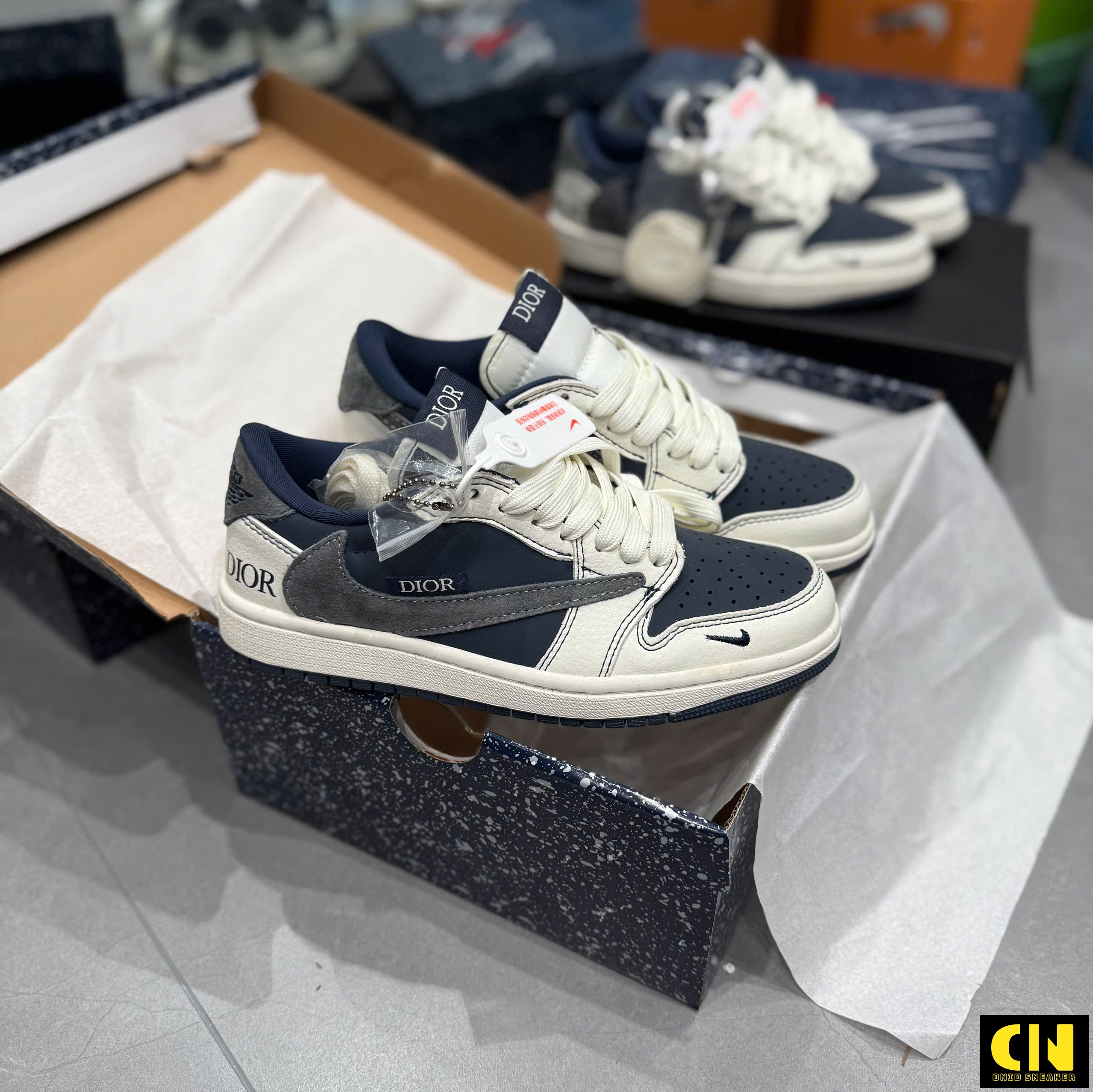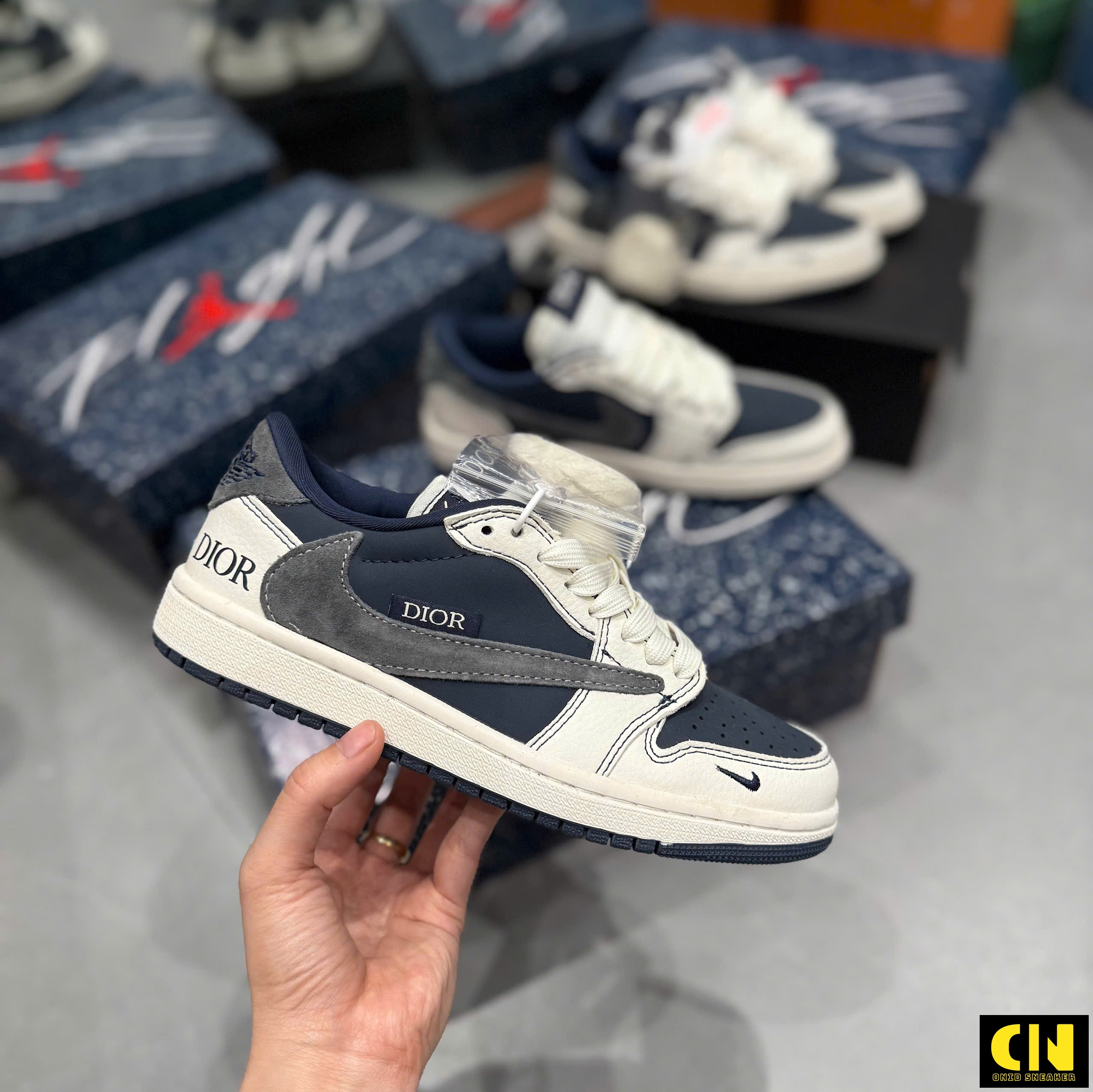 Một số hình ảnh Giày Nike Jordan 1 Low Travis Scott Dior Grey Navy Blue Fullbox