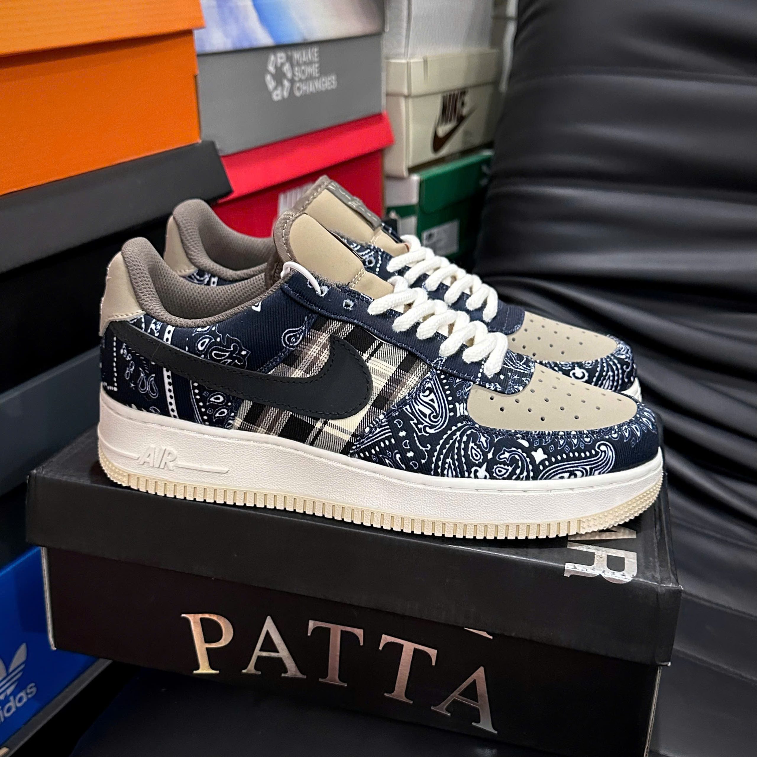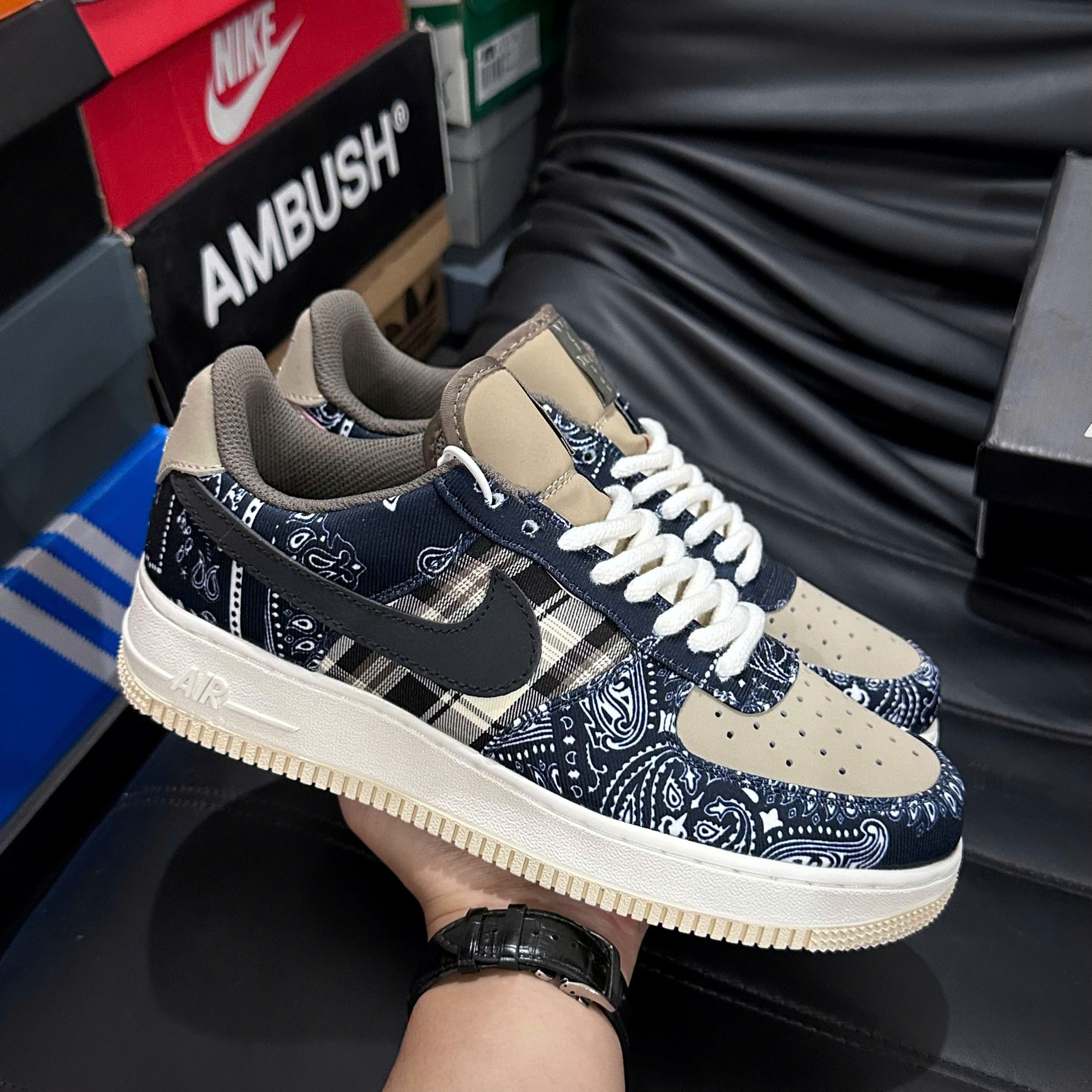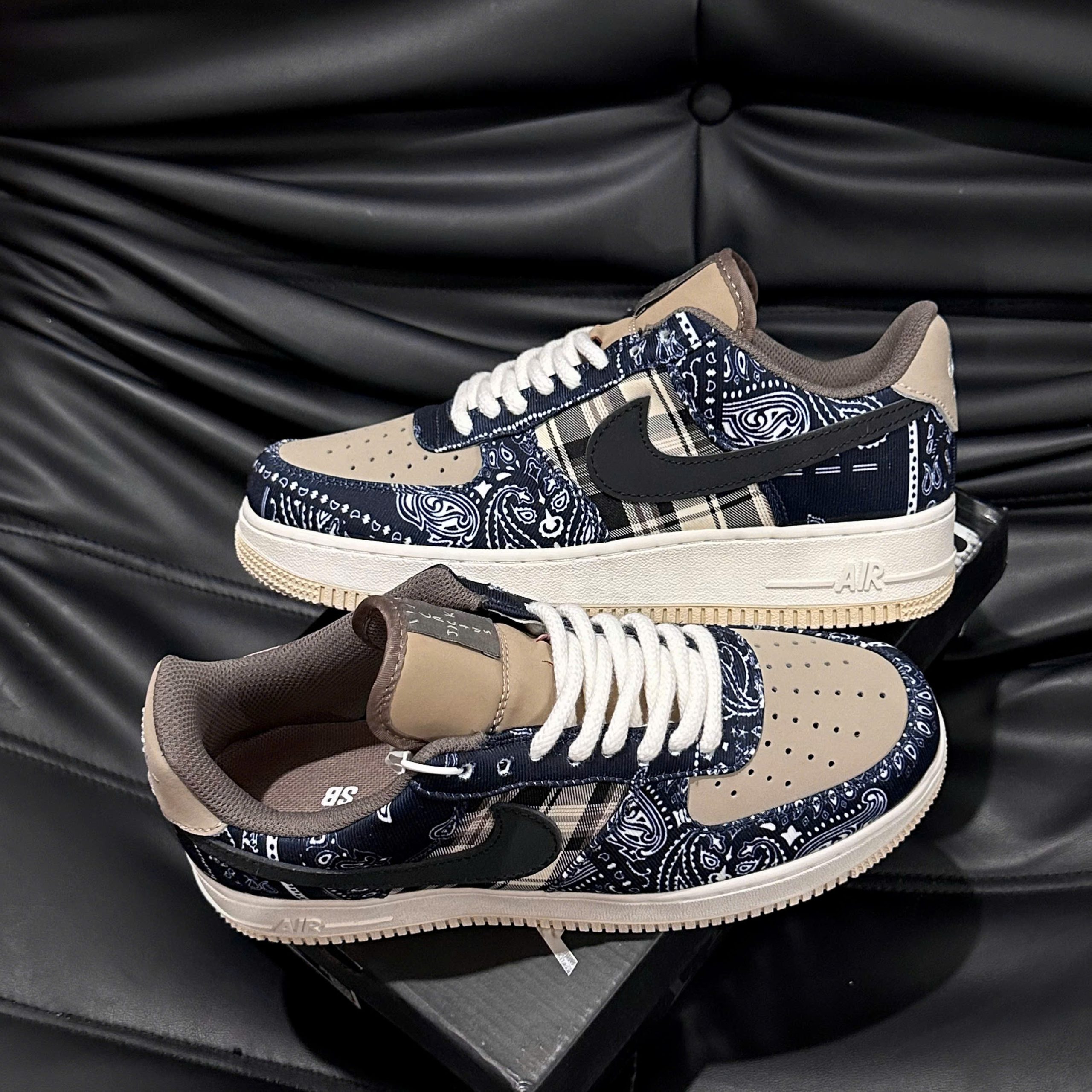 Nike Air Force 1 Travis Scott Like Auth tái hiện gần như trọn vẹn tinh thần của phiên bản collab đình đám giữa Nike và Travis Scott. Thiết kế nổi bật với phần upper canvas cao cấp, Swoosh có thể thay đổi và những chi tiết kim loại đặc trưng mang đậm dấu ấn Cactus Jack. Với phom dáng AF1 kinh điển kết hợp yếu tố streetwear cao cấp, đôi giày đem lại vẻ ngoài ấn tượng, cá tính và cực kỳ dễ phối với nhiều phong cách từ casual đến hip-hop.